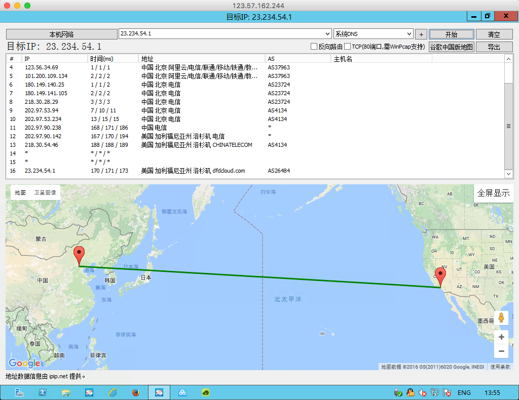 10.|-- 202.97.58.174 0.0% 10 157.0 155.1 152.9 157.1 1.4