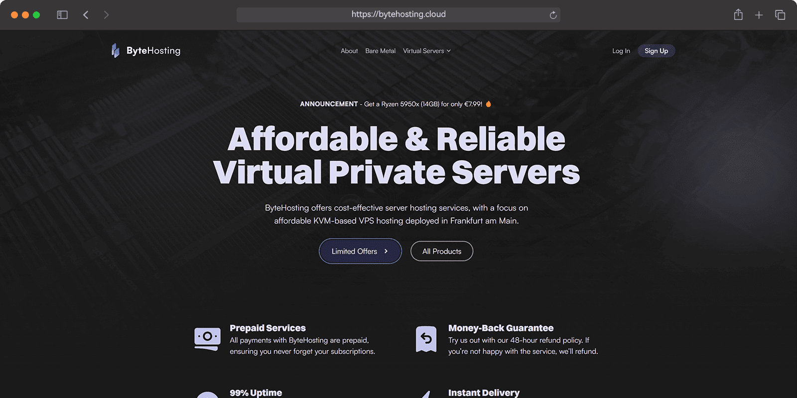 bytehosting是一家国外idc主机商,最近发布一款高配VPS,数据中心为德国法兰克福,cpu采用amd-ryzen-9-5900x系列,非常的有性价比。